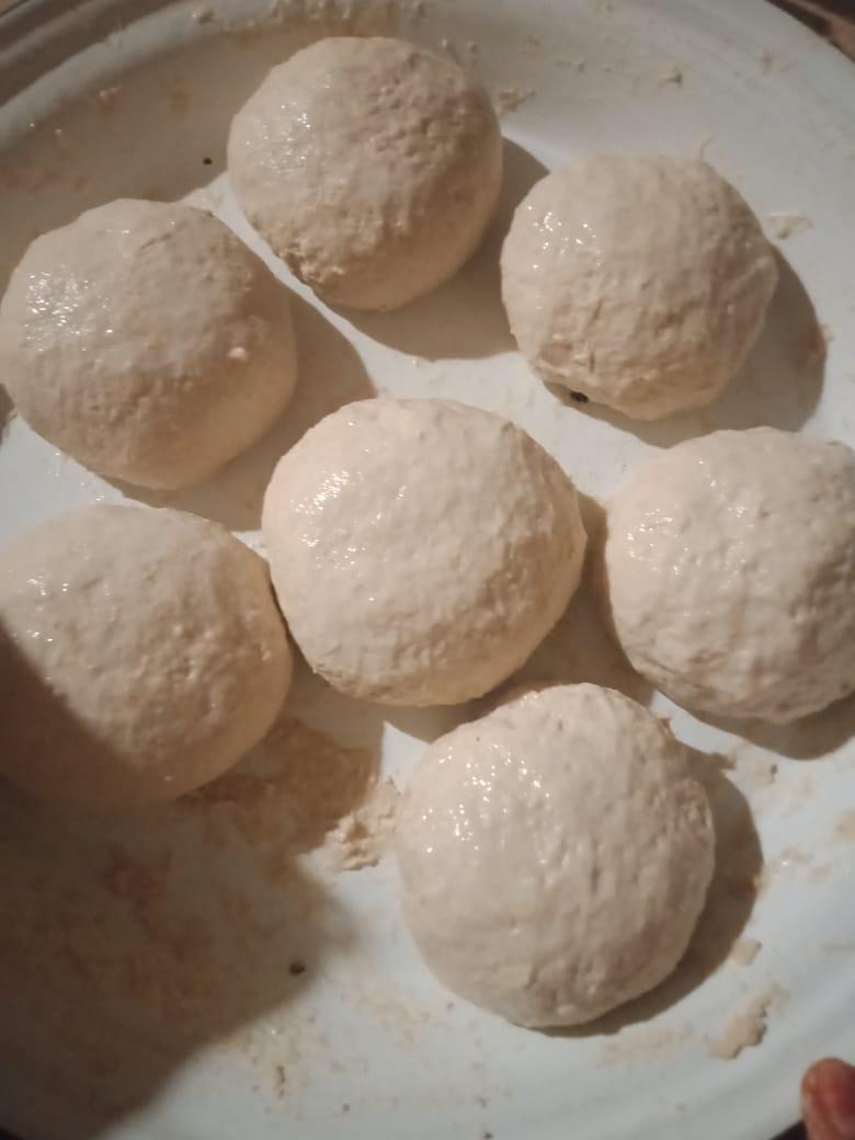 On mélange la semoule et la farine, puis on ajoute le sel et la levure. Lorsque le tout est bien mélangé, on ajoute peu à peu l’eau. Une fois la pâte bien homogène, la laisser gonfler 20 mn. Ensuite on fait des ou une galette selon le mode de cuisson.