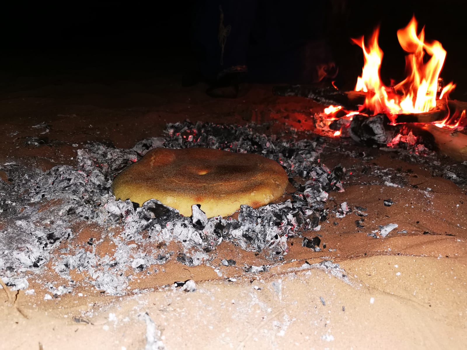 Le pain des nomades se décline de nombreuses façons, à la poêle, dans un four nomade (creusé sur le terrain) ou dans la braise. Quelques soit la technique de cuisson, les ingrédients sont identiques.