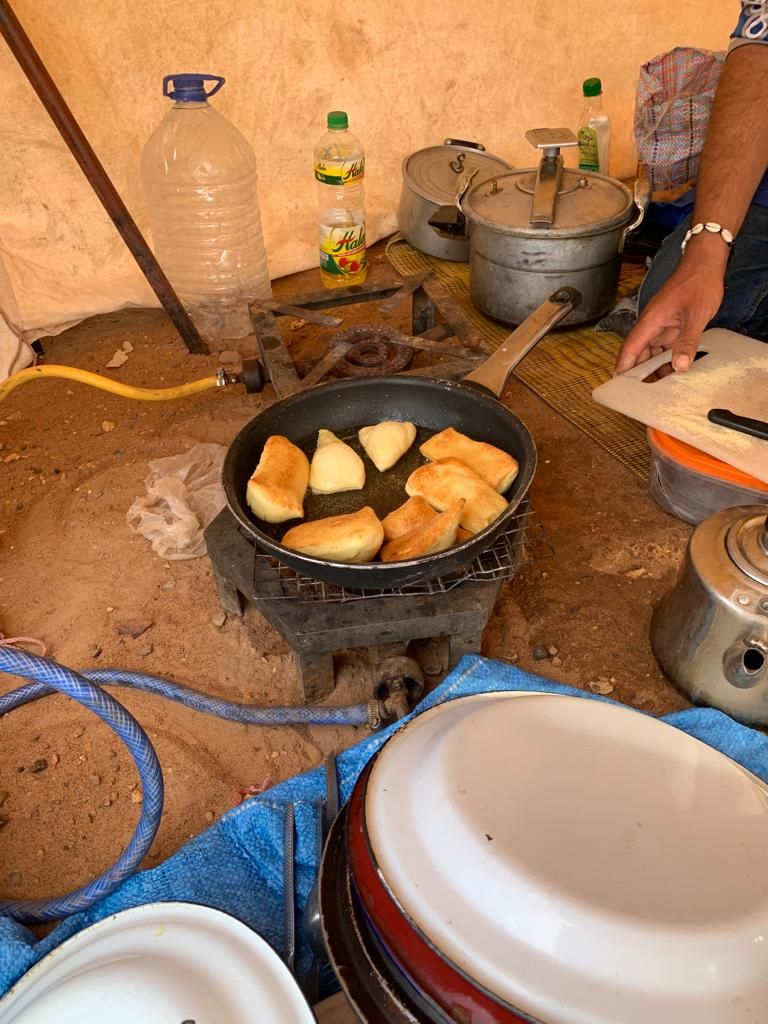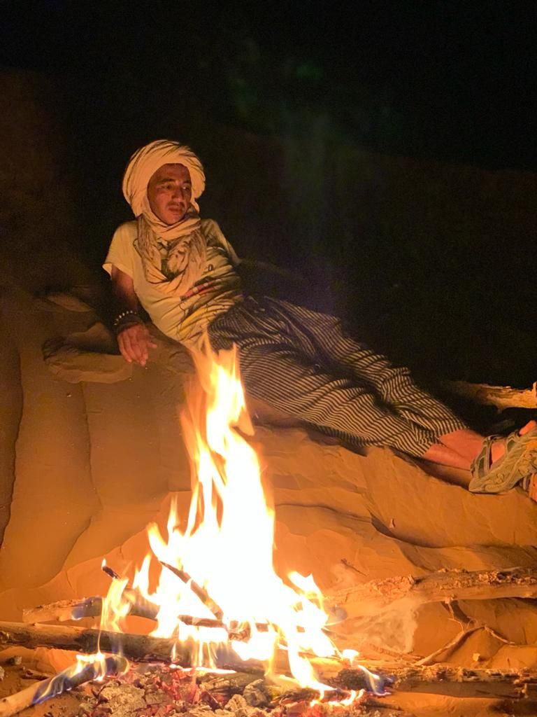 Ce matin, trois heures de marche dans les dunes . Dans ce très bel endroit, vous installez votre bivouac. Au rythme de la vie nomade, vous déjeunez avant de vous laisser bercer par l’indispensable sieste. La soirée se veut calme. Peut- être souhaitez vous acquérir quelques connaissances quant à la vie des nomades et celle des dromadaires. Le thé, les échanges, la préparation du pain de sable accompagnent votre soirée. Les chants berbères vous donnent de cette belle sérénité qui émanent des hommes du désert, les hommes libres ou « Imazighen ».