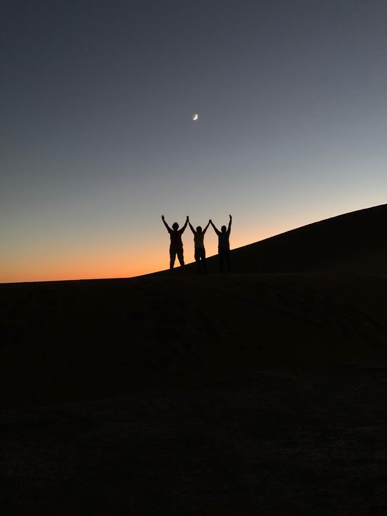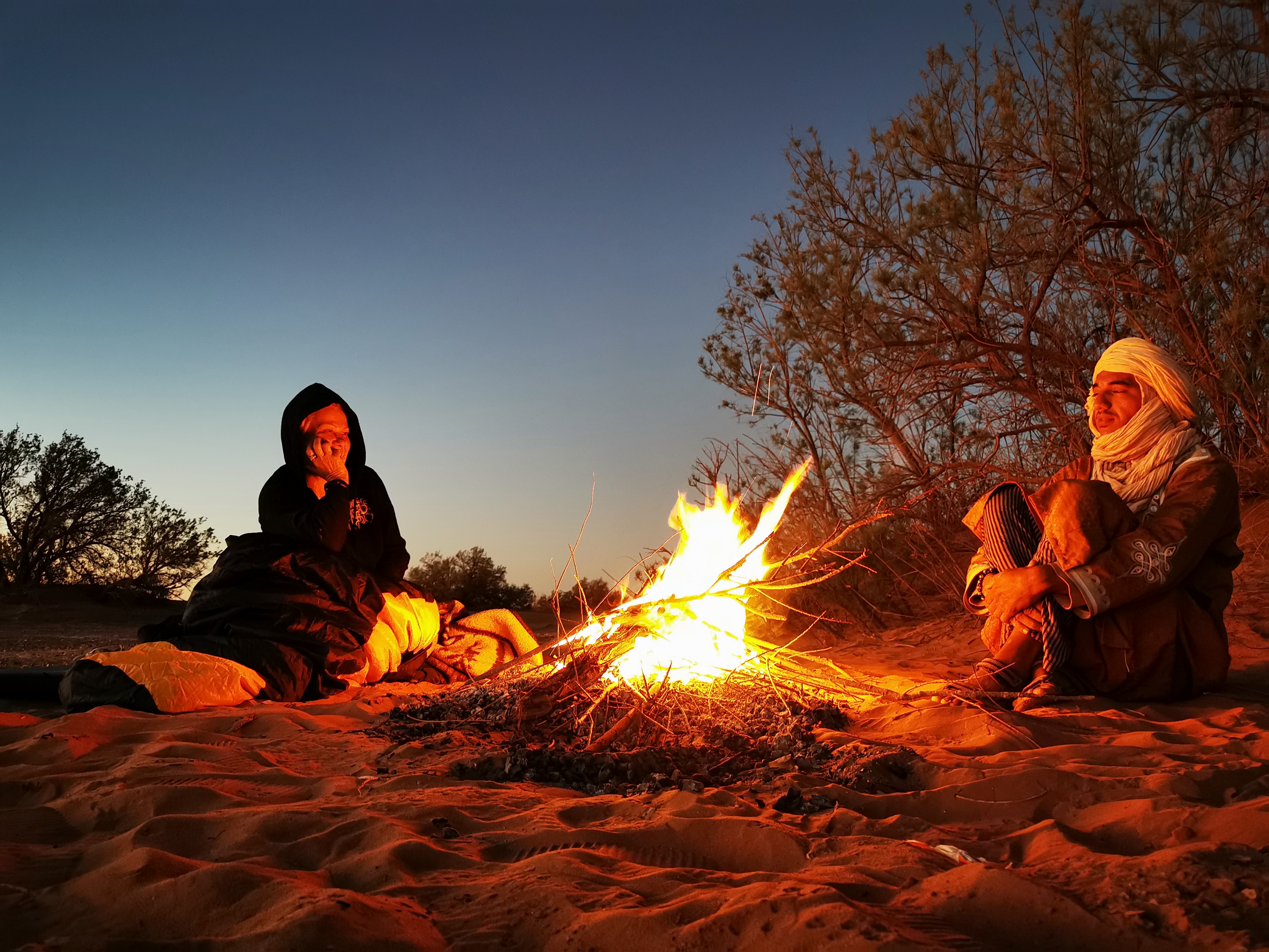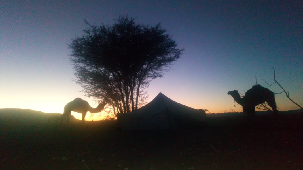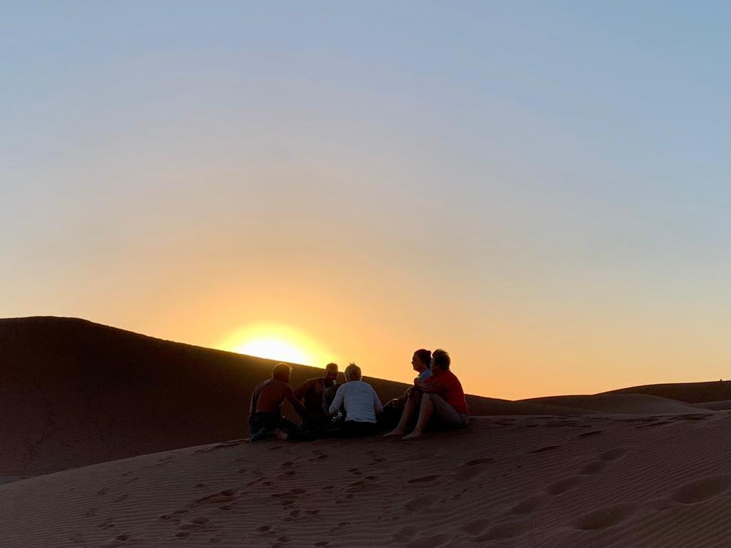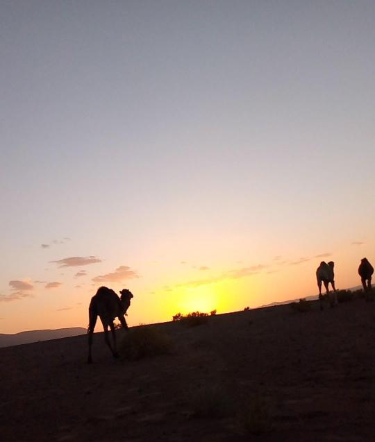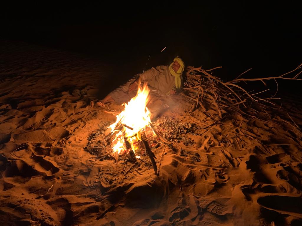 Le Silence du Désert : Il se vit, il se déguste…..Le silence du désert en particulier quand le jour décline enveloppe le voyageur d’un doux sentiment d’apaisement et de bonheur. La journée nous a émerveillé de par la beauté des paysages et le soir offre à son tour ses chaleureuses et sublimes couleurs. Le ciel paré de rouge orangé, le crépitement des feux de bois odorants….et bientôt la voie lactée et des millions d’étoiles empliront nos yeux d’images définitivement inoubliables….peut-être choisirons nous de dormir à la belle étoile, il fait si bon ce soir…