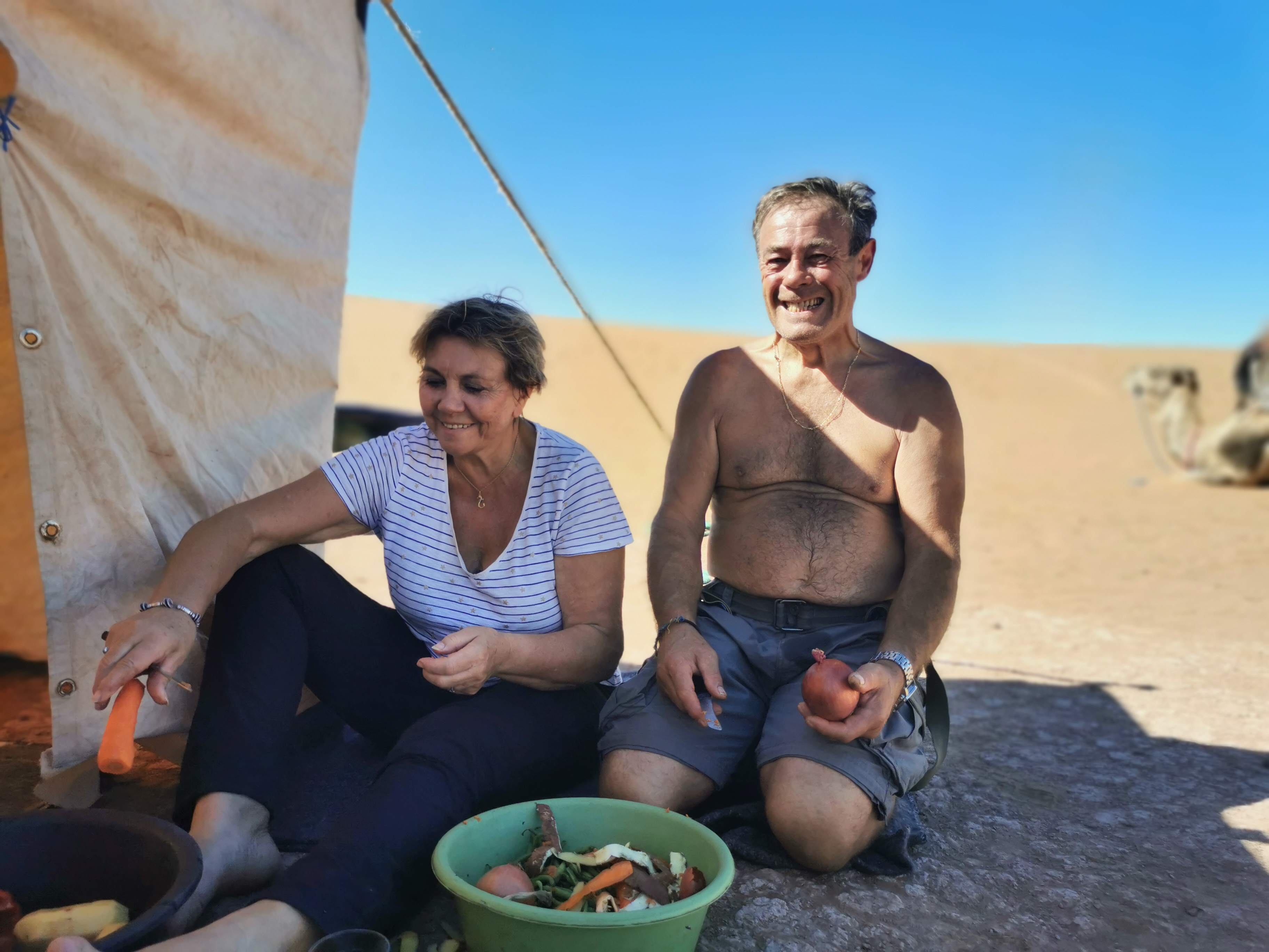 Marchez a travers des paysages à couper le souffle, découvrez les secrets de la préparation des tagines, du thé traditionnel, du pain des sables et partagez le quotidien des nomades en participant à leurs tâches journalières.
