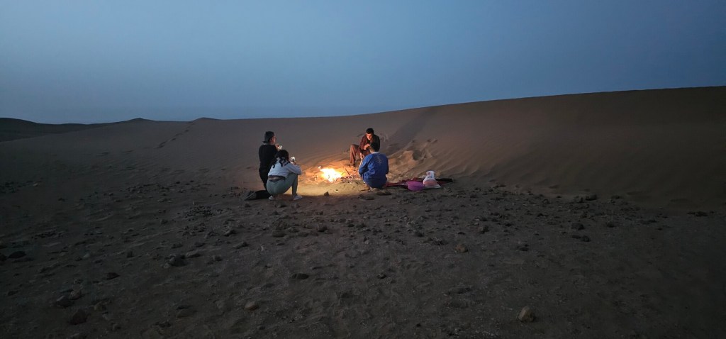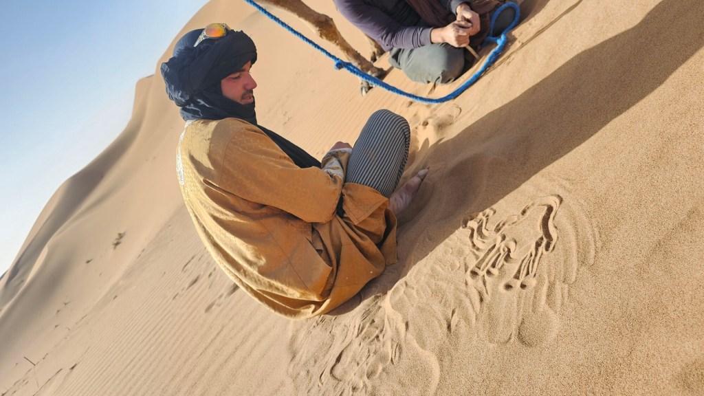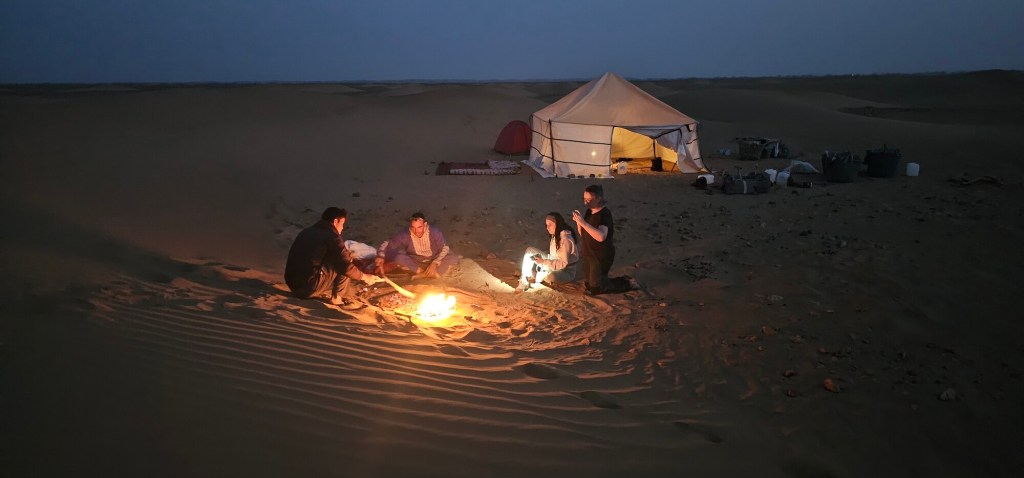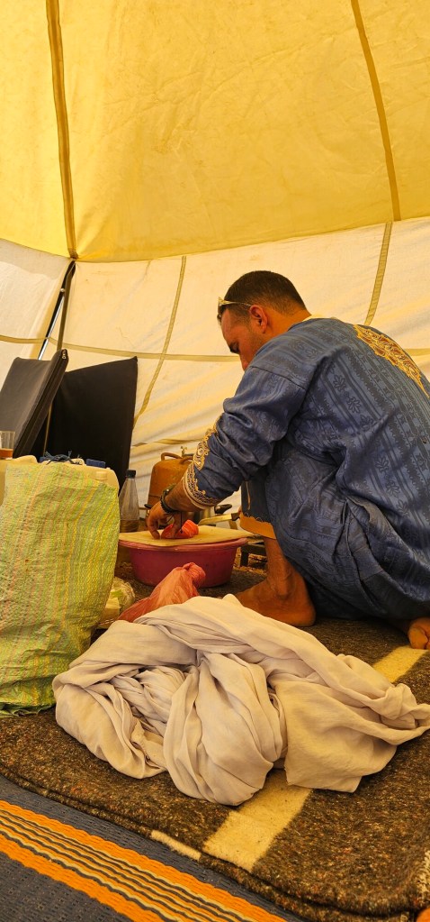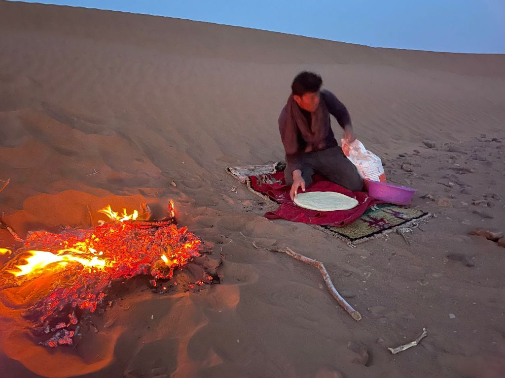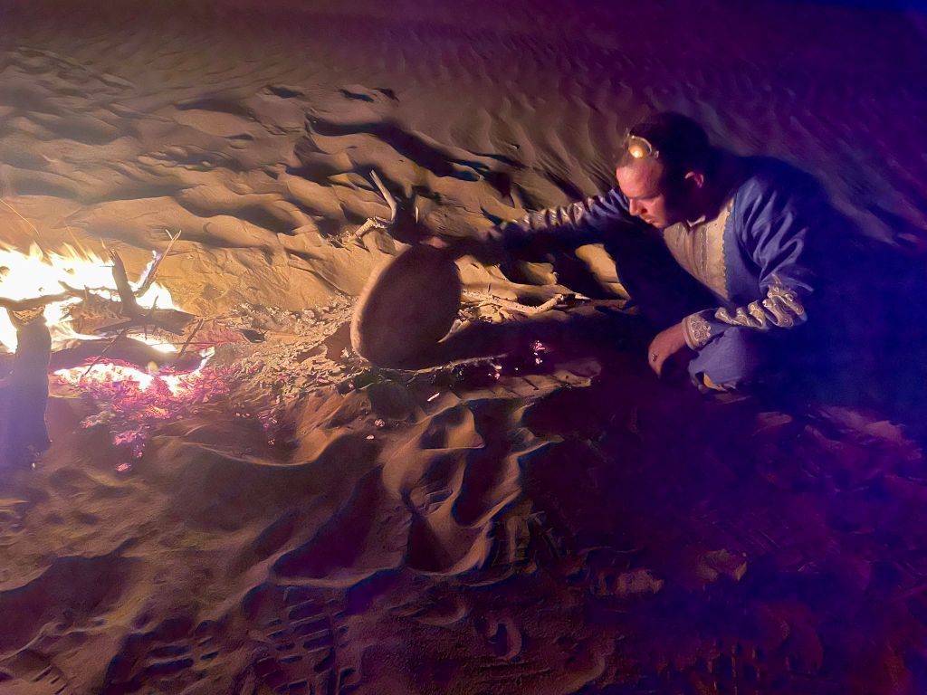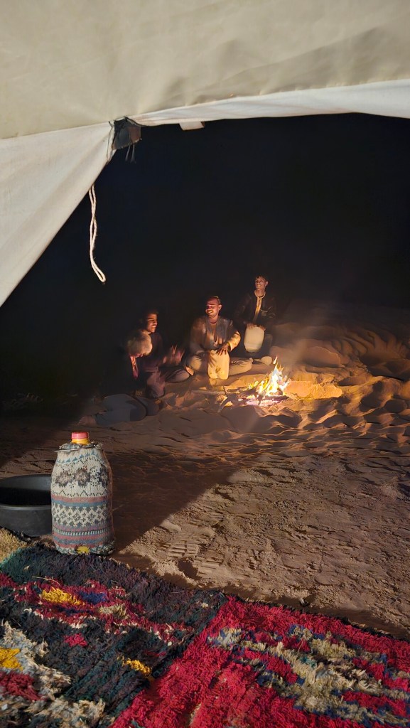 Entre l’enseignement du thé, des tagines et des pains de sable nous avons partagé avec nos amis nomades ce qui caractérise nos vies respectives. Le partage était aisé, amical et souvent très complice, des liens authentiques se sont ainsi créés. Les fous rires ponctuaient volontiers nos délicieuses soirées autour du feu, ajoutant une touche de magie à nos échanges. Merci à tous pour cette fabuleuse expérience.
