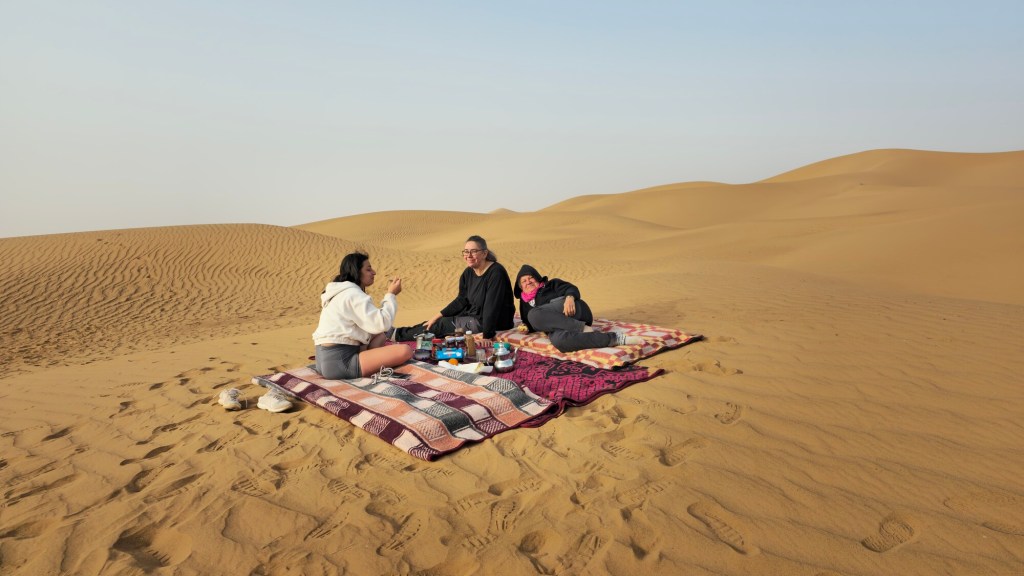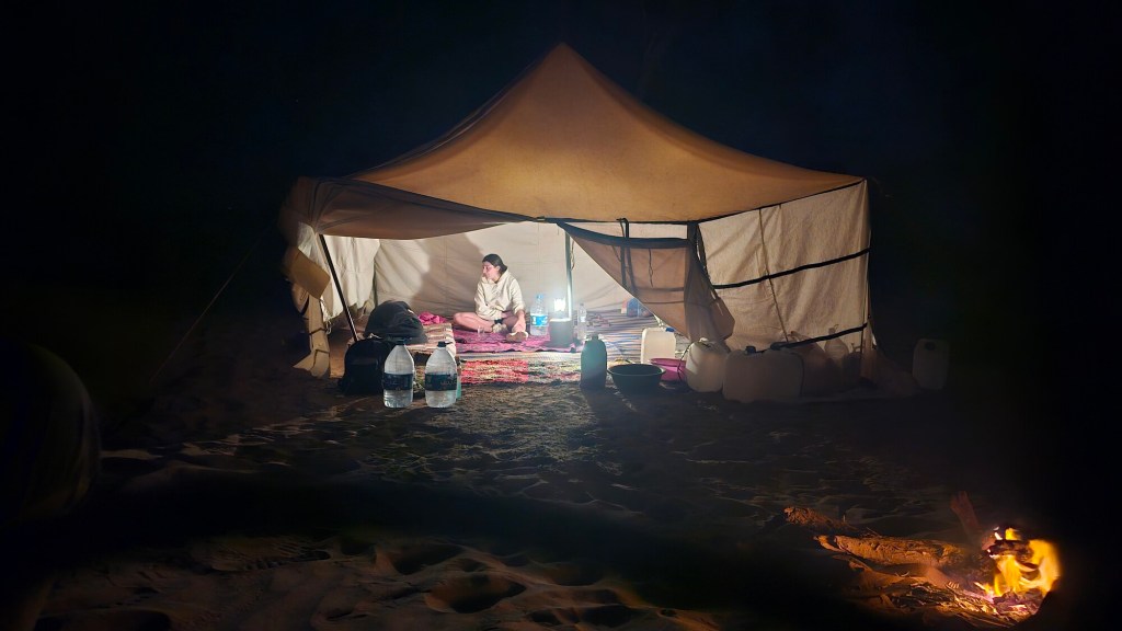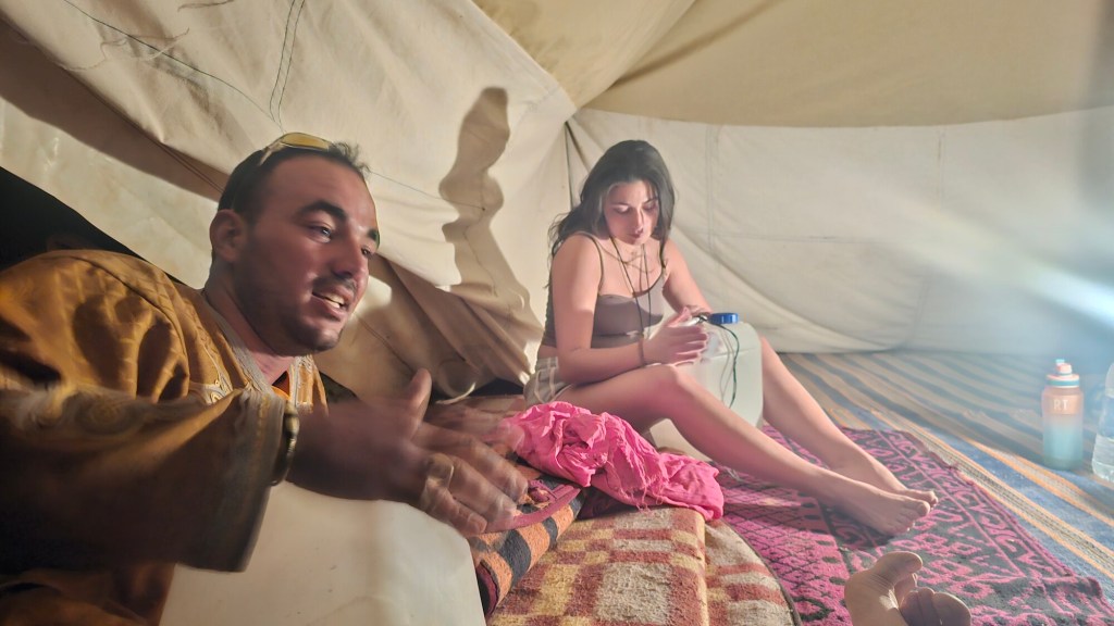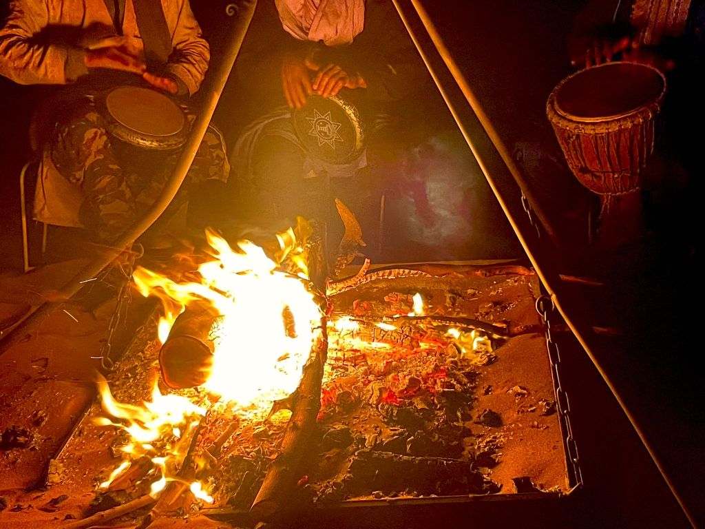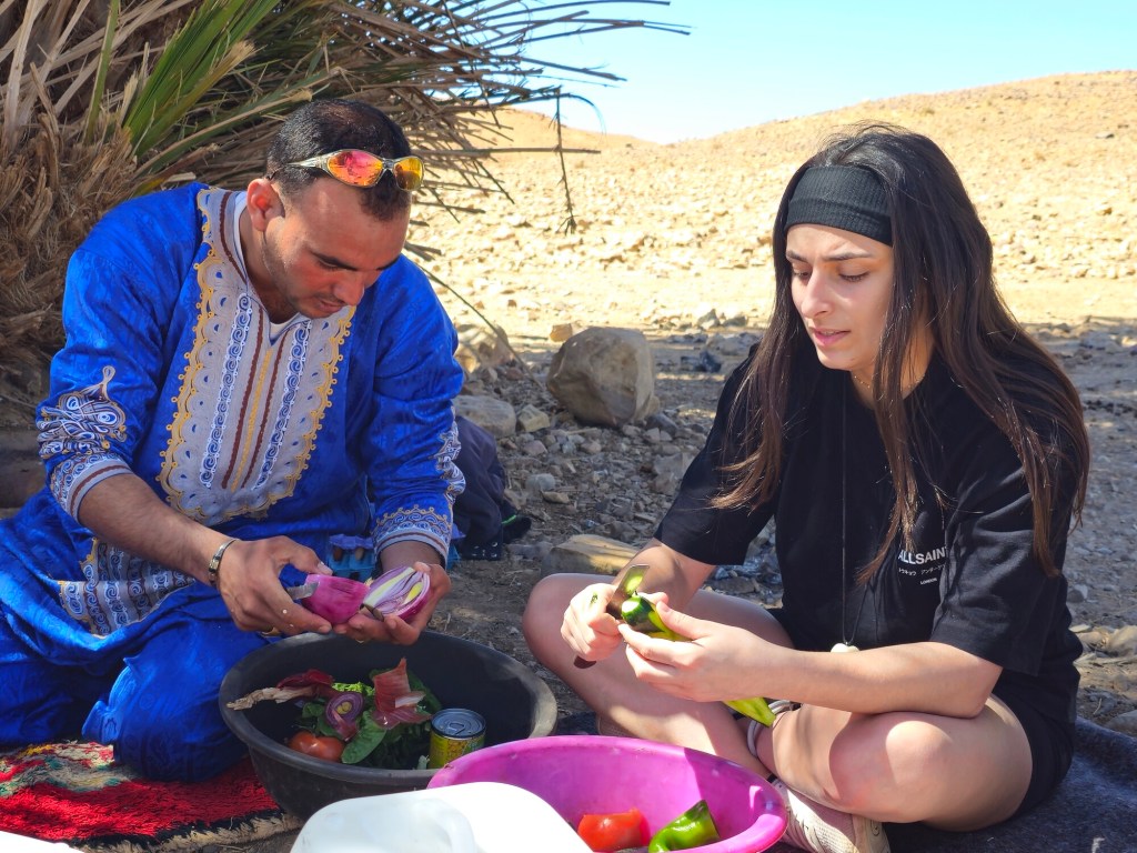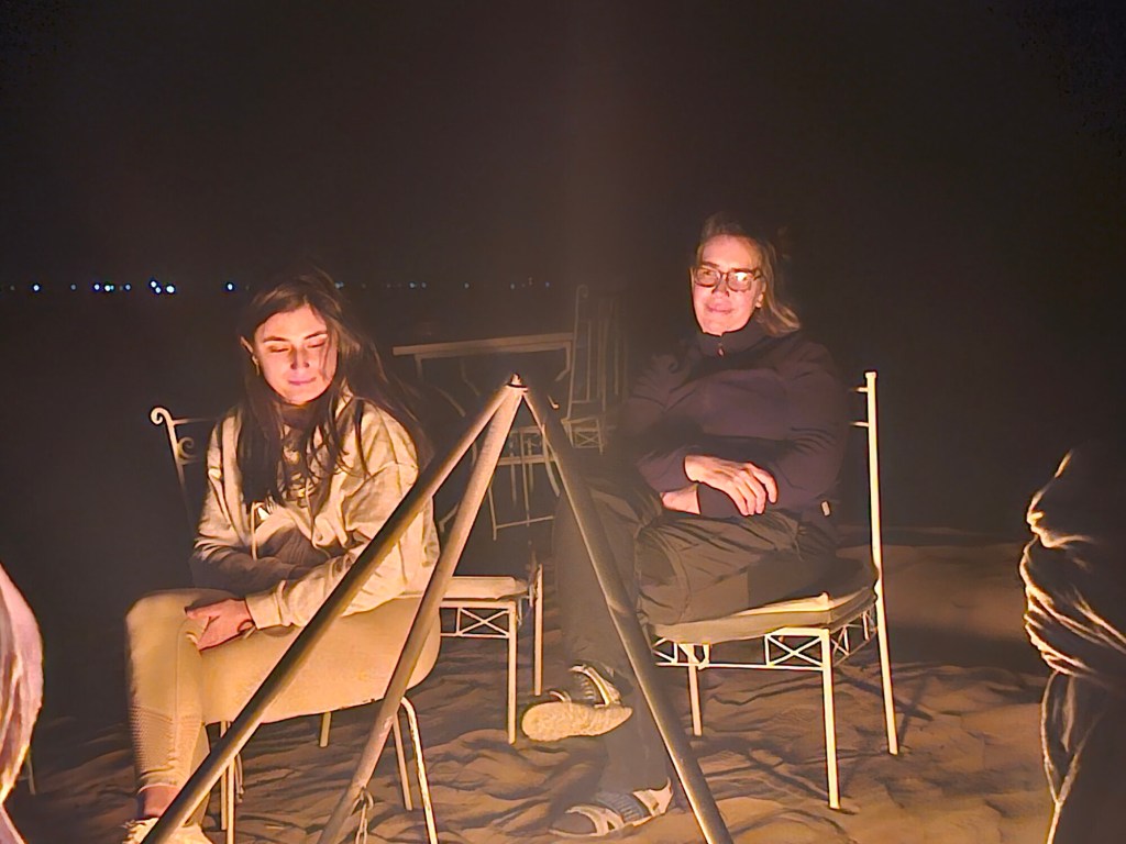 Entre l’enseignement du thé, des tagines et des pains de sable nous avons partagé avec nos amis nomades ce qui caractérise nos vies respectives. Le partage était aisé, amical et souvent très complice, des liens authentiques se sont ainsi créés. Les fous rires ponctuaient volontiers nos délicieuses soirées autour du feu, ajoutant une touche de magie à nos échanges. Merci à tous pour cette fabuleuse expérience.