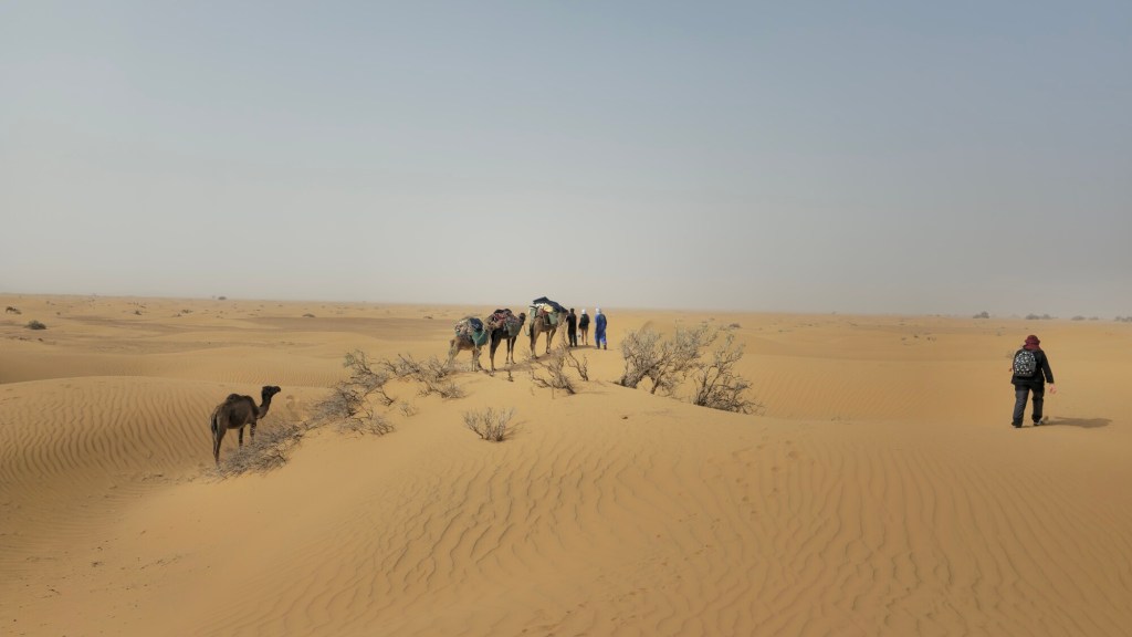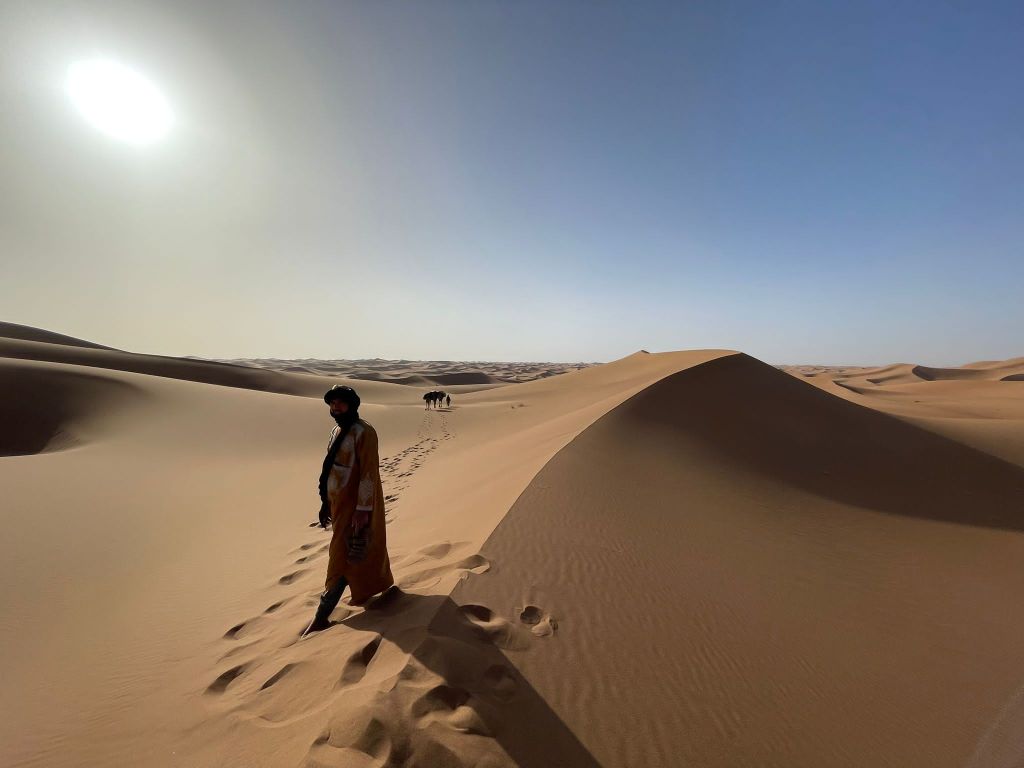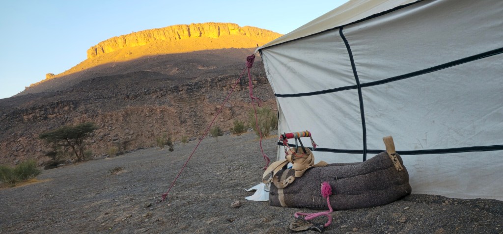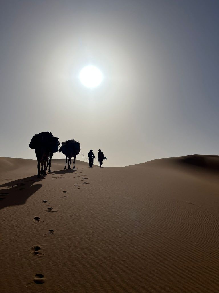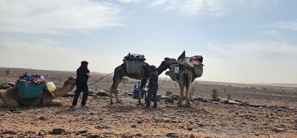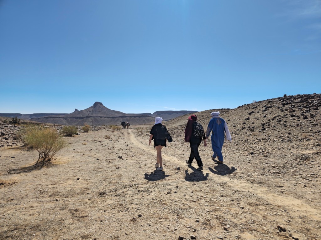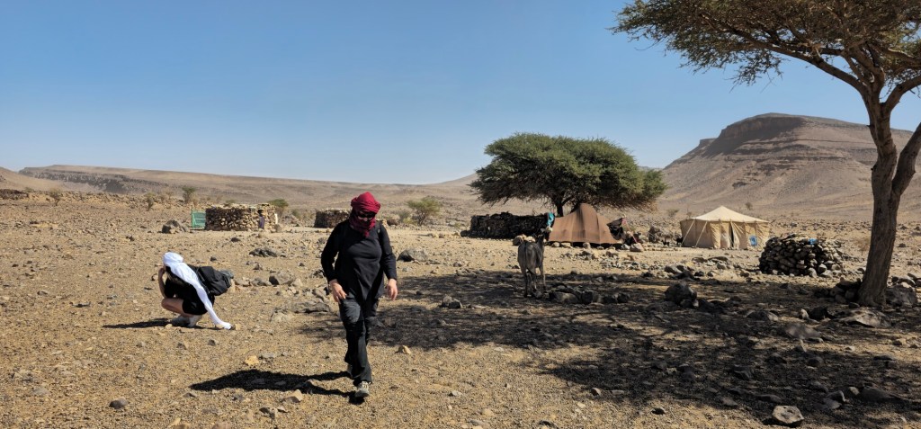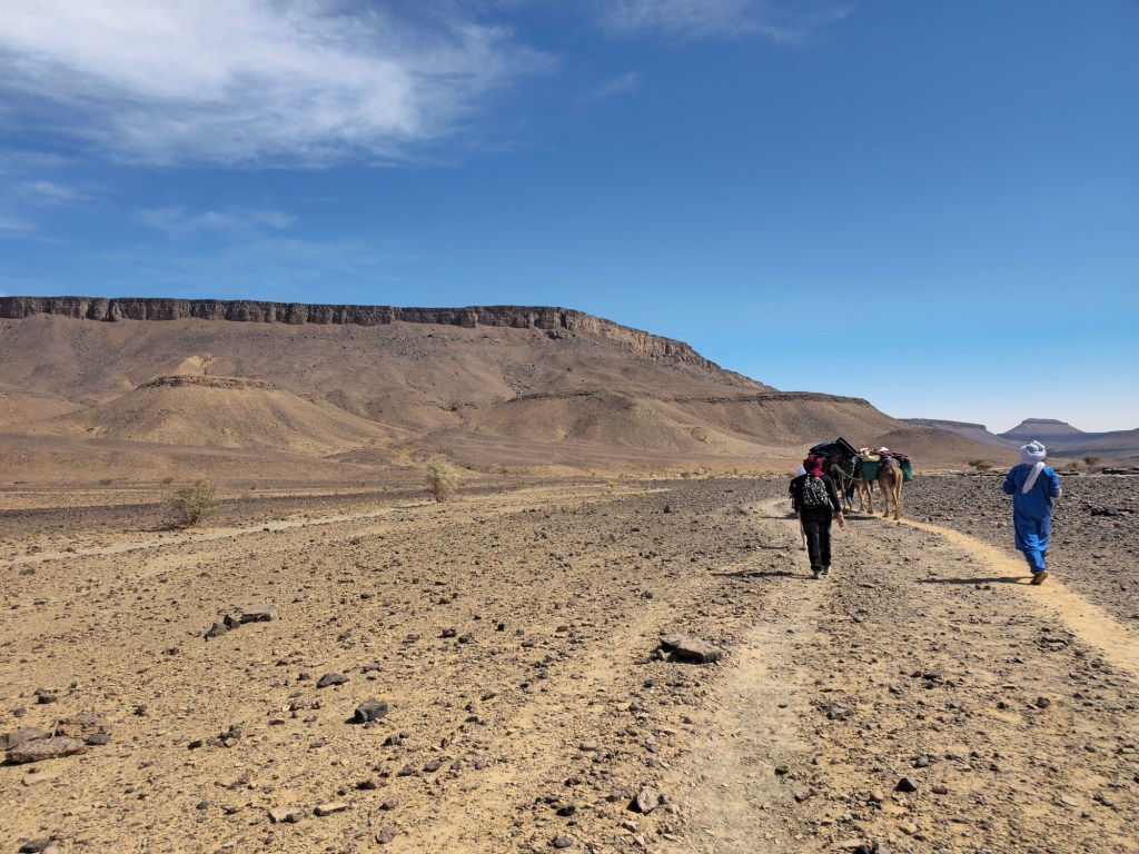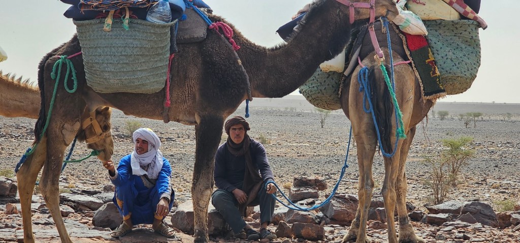 C’est une aventure extraordinaire que nous avons encore vécu dans le désert marocain. Nos amis Hamid et Lahcen d’authentiques nomades nous ont accompagné avec toute la bienveillance qui les définit. Les paysages fabuleux , les montagnes de Djebel Bani, les villages nomades…Que de découvertes ! Nous avons ainsi randonné jusqu’aux grandes dunes de Chegaga.