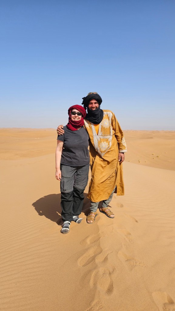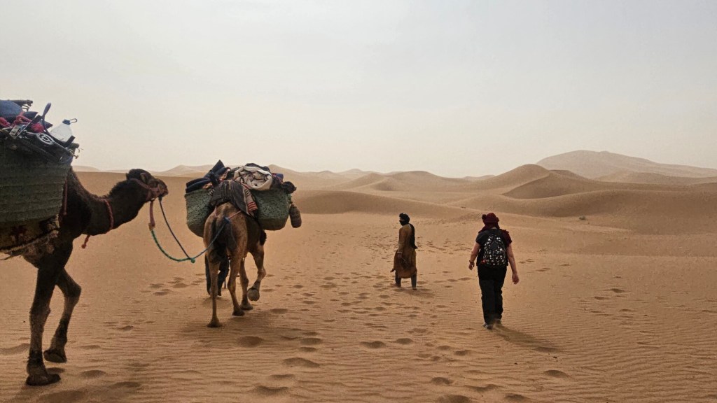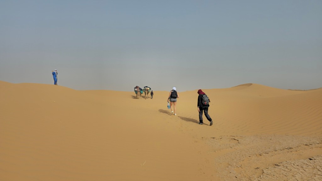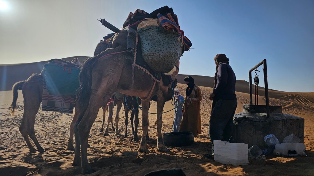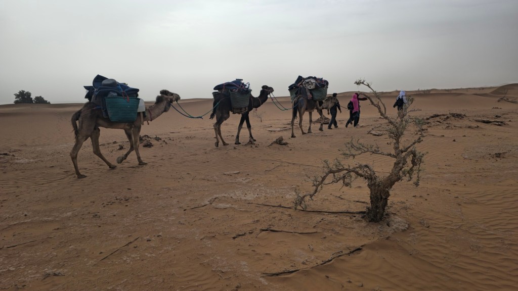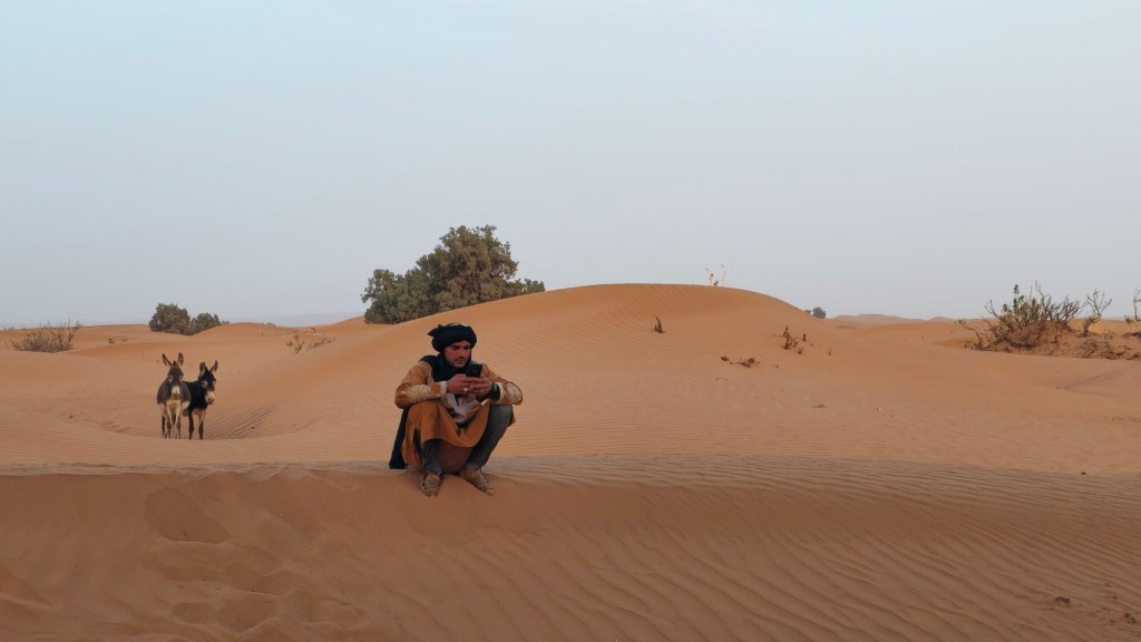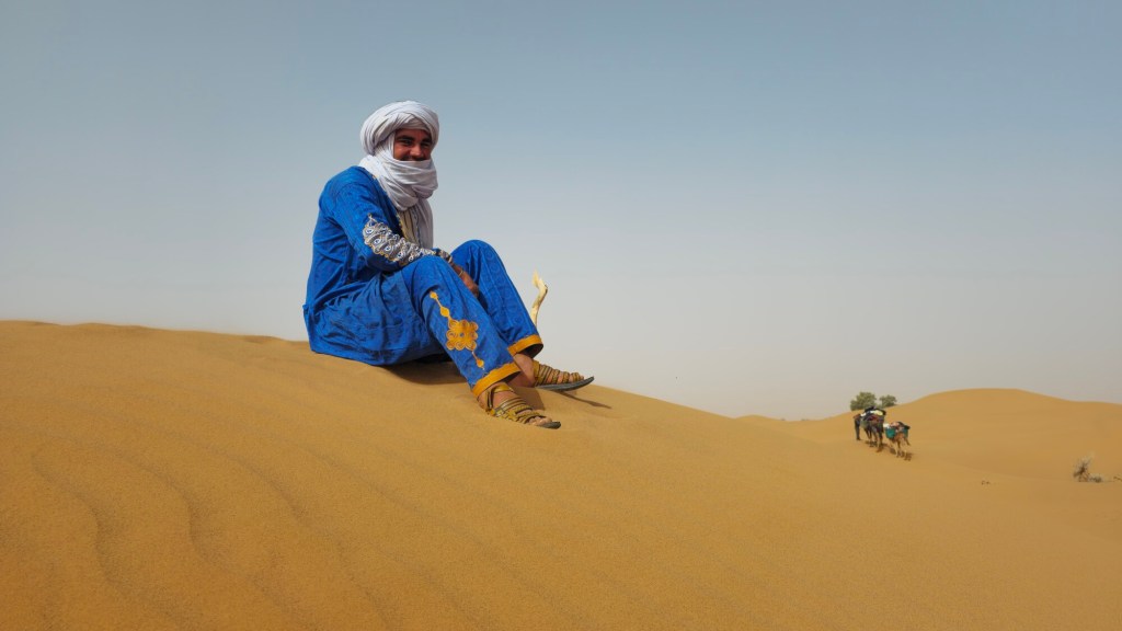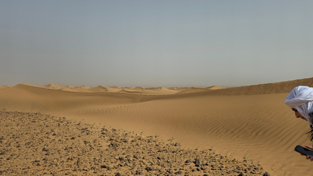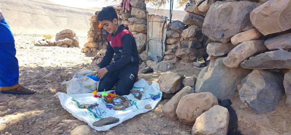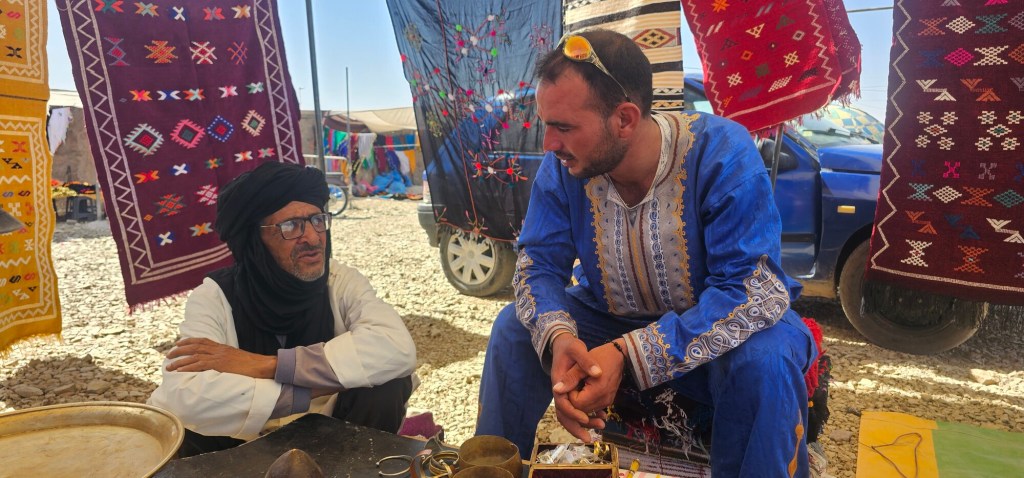 C’est une aventure extraordinaire que nous avons encore vécu dans le désert marocain. Nos amis Hamid et Lahcen d’authentiques nomades nous ont accompagné avec toute la bienveillance qui les définit. Les paysages fabuleux , les montagnes de Djebel Bani, les villages nomades…Que de découvertes ! Nous avons ainsi randonné jusqu’aux grandes dunes de Chegaga.